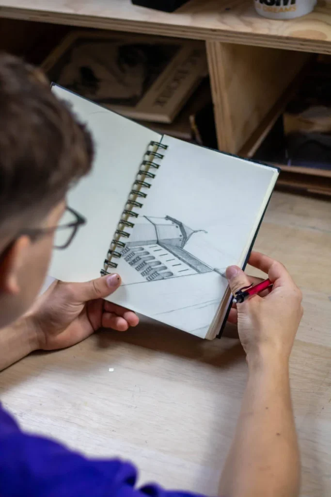 Aron Bakker (2008) is een jonge kunstenaar uit Amersfoort die opvalt met zijn gedetailleerde tekeningen waarin strakke lijnen en architectonische precisie samenkomen. Al op jonge leeftijd raakte hij geïnspireerd door grootheden als M.C. Escher en Piet Mondriaan, wat terug te zien is in zijn doordachte composities en grafische stijl.